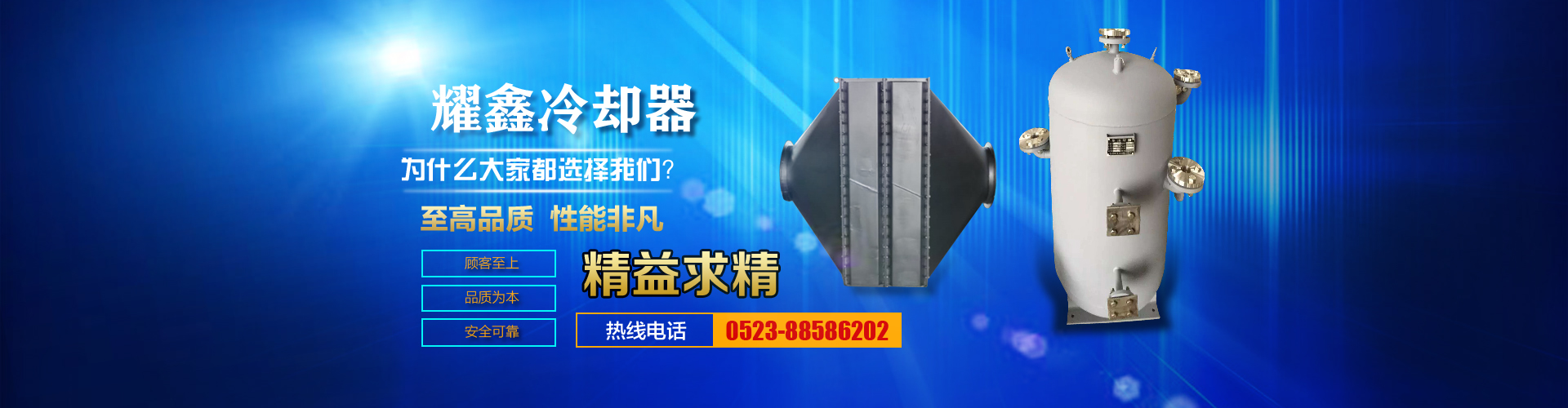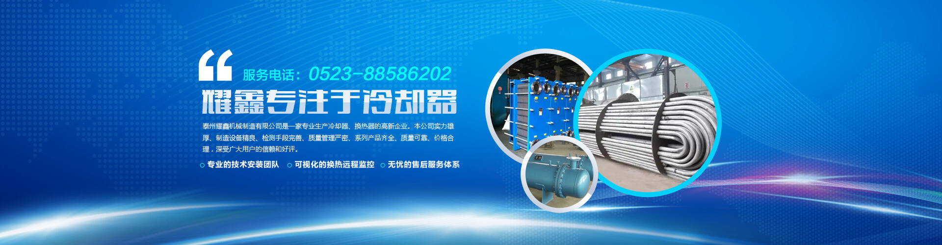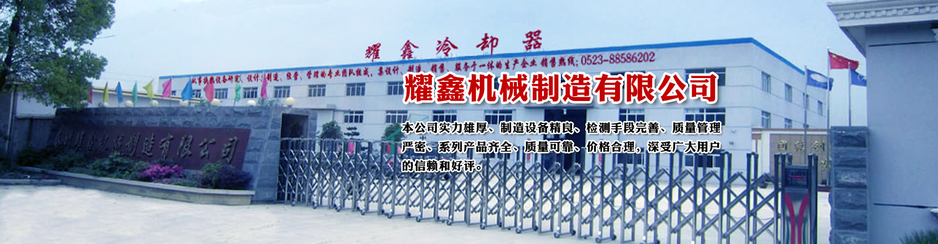 免費咨詢方案 +泰州耀鑫機械制造有限公司座落于風景如畫的江蘇魚米之鄉(xiāng)--全國文明城鎮(zhèn)婁莊鎮(zhèn),是一家專業(yè)生產(chǎn)風冷卻器、列管式冷卻器、板式冷卻器的企業(yè)。本公司實力雄厚、制造設備精良、檢測手段完善、質量管理嚴密、系列產(chǎn)品齊全、質量可靠、價格合理,深受廣大用戶的信賴和好評。